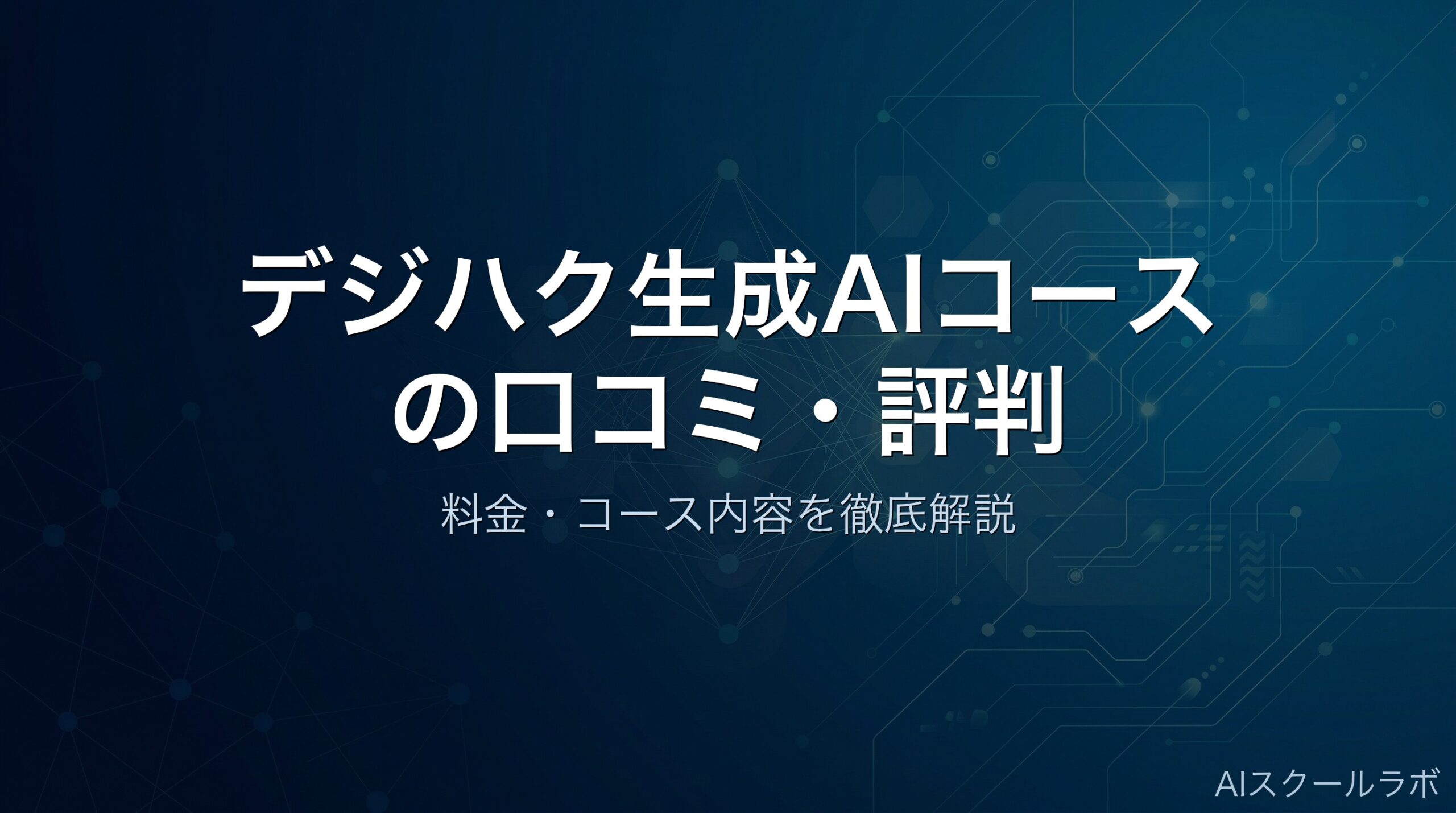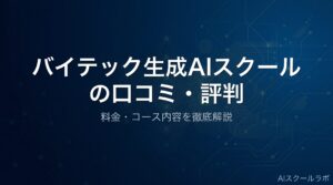 本記事では、デジハク生成AIスクールについて、受講者のリアルな口コミ・評判をもとに、料金体系、カリキュラム内容、サポート体制まで徹底的に解説します。