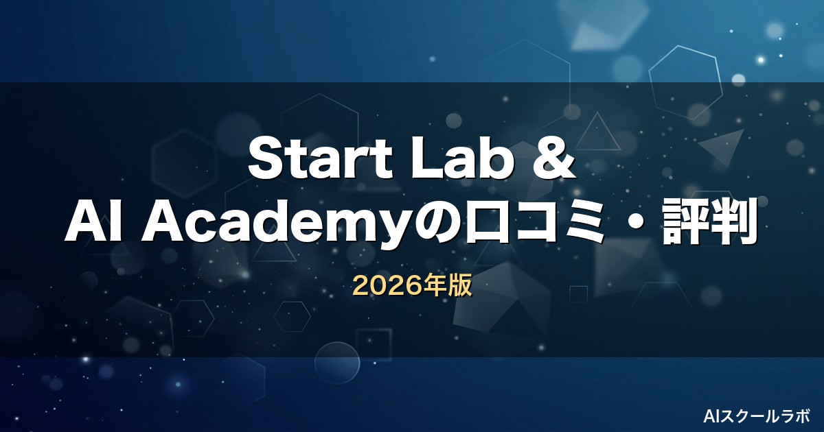 Start Lab(スタートラボ)& AI Academyの口コミ・評判【2026年版】 2026 4/08 広告 口コミ・評判 2026年4月8日 ⚠ 重要なお知らせ Start Lab(スタートラボ)は2023年2月をもってサービスを終了しました。現在、公式サイト(startlab.jp)は閉鎖されており、新規のお申し込みはできません。以下の情報は過去の参考情報としてお読みください。 test 口コミ・評判 Start Lab よかったらシェアしてね! URLをコピーしました! URLをコピーしました! AIスクール料金比較!補助金で最大70%オフの方法 AI Academy Bootcampの評判は?初心者向け実力 関連記事 DMM生成AI CAMPの無料相談と給付金活用ガイド【2026年版】 2026年4月8日 DMM生成AI CAMPの評判は?受講生のリアルな声を徹底検証 2026年4月8日 DMM生成AI CAMPの料金は高い?月額・分割・他社比較 2026年4月8日 ライフシフトラボAIコースを5校と比較!本当の強みは? 2026年4月7日 40代50代がライフシフトラボAIコースを選ぶべき理由 2026年4月7日 ライフシフトラボAIコース転職成功率と成功する人の特徴 2026年4月7日 東京AIスクール無料カウンセリングの内容・流れ・予約方法 2026年4月7日 東京AIスクールの料金は高い?コスパ・他社比較を解説 2026年4月7日
